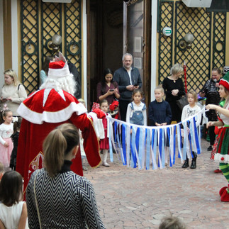 17 декабря в атмосферном дворце Ауэрсперг развернулось волшебное новогоднее празднество, включающее в себя ёлку и детский новогодний концерт. Выступление Деда Мороза и Снегурочки, а также захватывающее шоу пузырей, превратили это событие в неповторимый момент. Дети с восторгом делились стихами и исполняли песни, наполняя воздух праздничным волшебством.